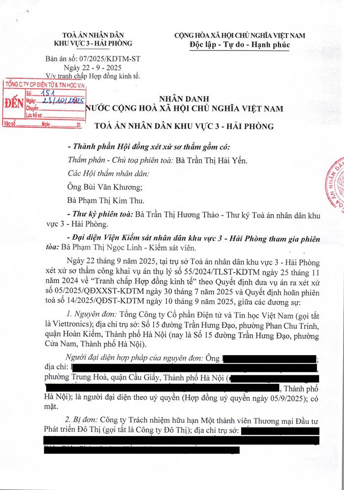 Tòa án nhân dân KV3 Hải Phòng kết luận về việc tranh chấp hợp đồng kinh tế