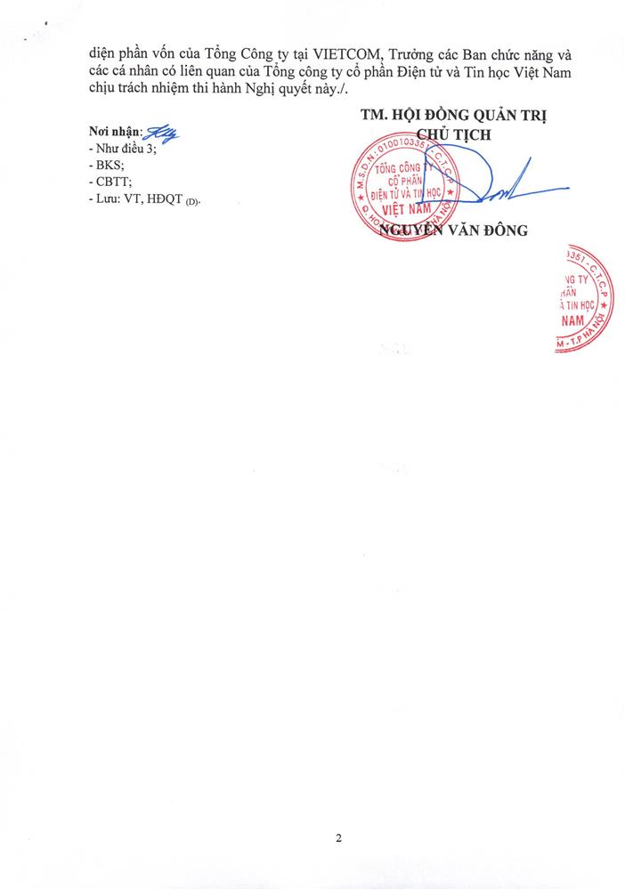 • Nghị quyết HĐQT vê việc chuyển nhượng vốn của Viettronics tại Công ty cổ phần máy tính và truyền thông Việt Nam